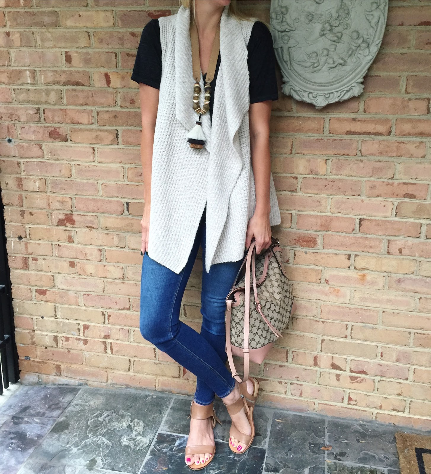 I can’t tell you how often I wear this vest. It is not super cold in Charleston yet so I just toss it on over a tee shirt. My mom and sister ordered it too they loved mine so much. I am wearing a small.