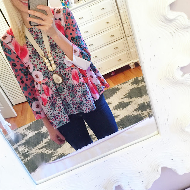 I have to start with this blouse I recently bought. I just loved the color palette and the flirty style. It would be perfect to wear out for a Valentine’s Date. Fun fact Matt and I had our first date on Valentine’s Day 15 years ago. Total cheeseball to have our first date on Valentine’s day but hey it worked out:)