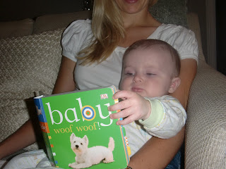 Ok, so I will admit I kind of laughed when people told me I should be reading to Sterling every night. I mean he is a baby does he really care to listen to a book much less understand it. However the other day I was bored and he was fussy so I decided why not, lets read a book and he loved it! He loves looking at the pictures and helping me turn the pages. So now I make reading a regular occurrence in the Mason household. He even likes to read my US Weekly with me, too bad I don’t have pictures of that- we do it while Daddy’s at work:) He will be one well versed baby on celebrity gossip when he is older