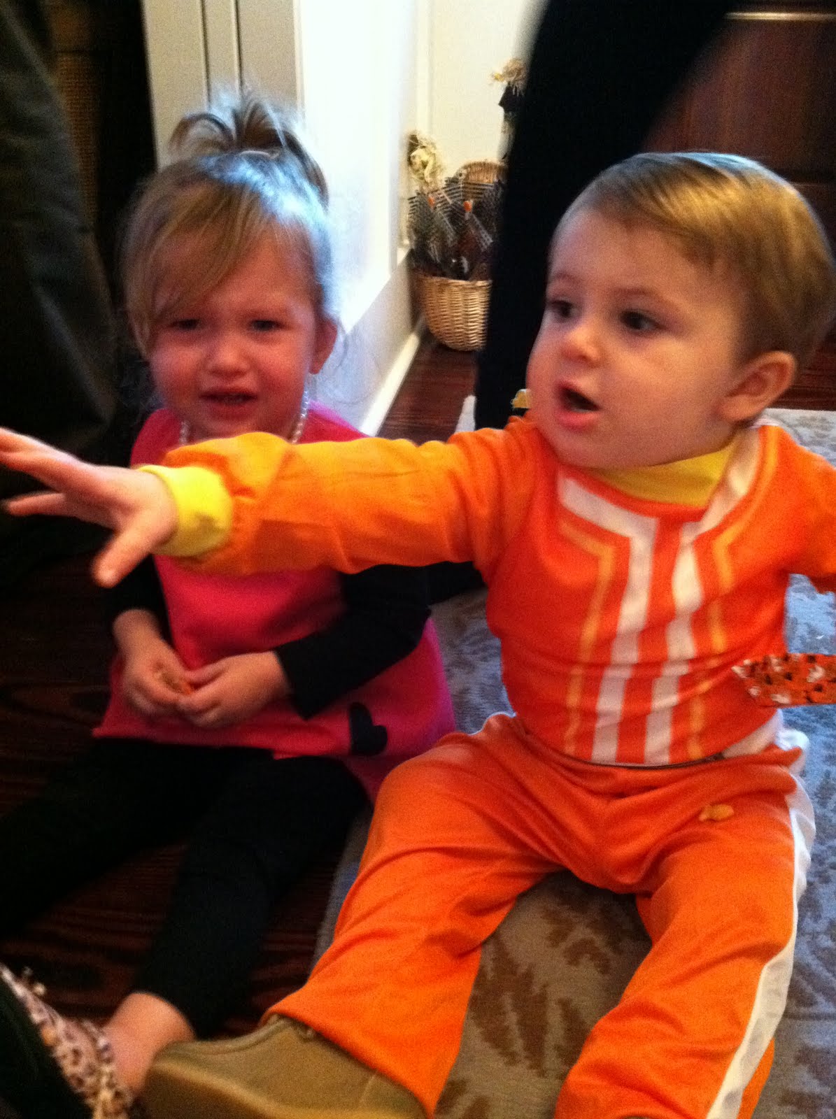 Sterling and Lily chilling at the Halloween Party. Although it looks more like he was harassing her!