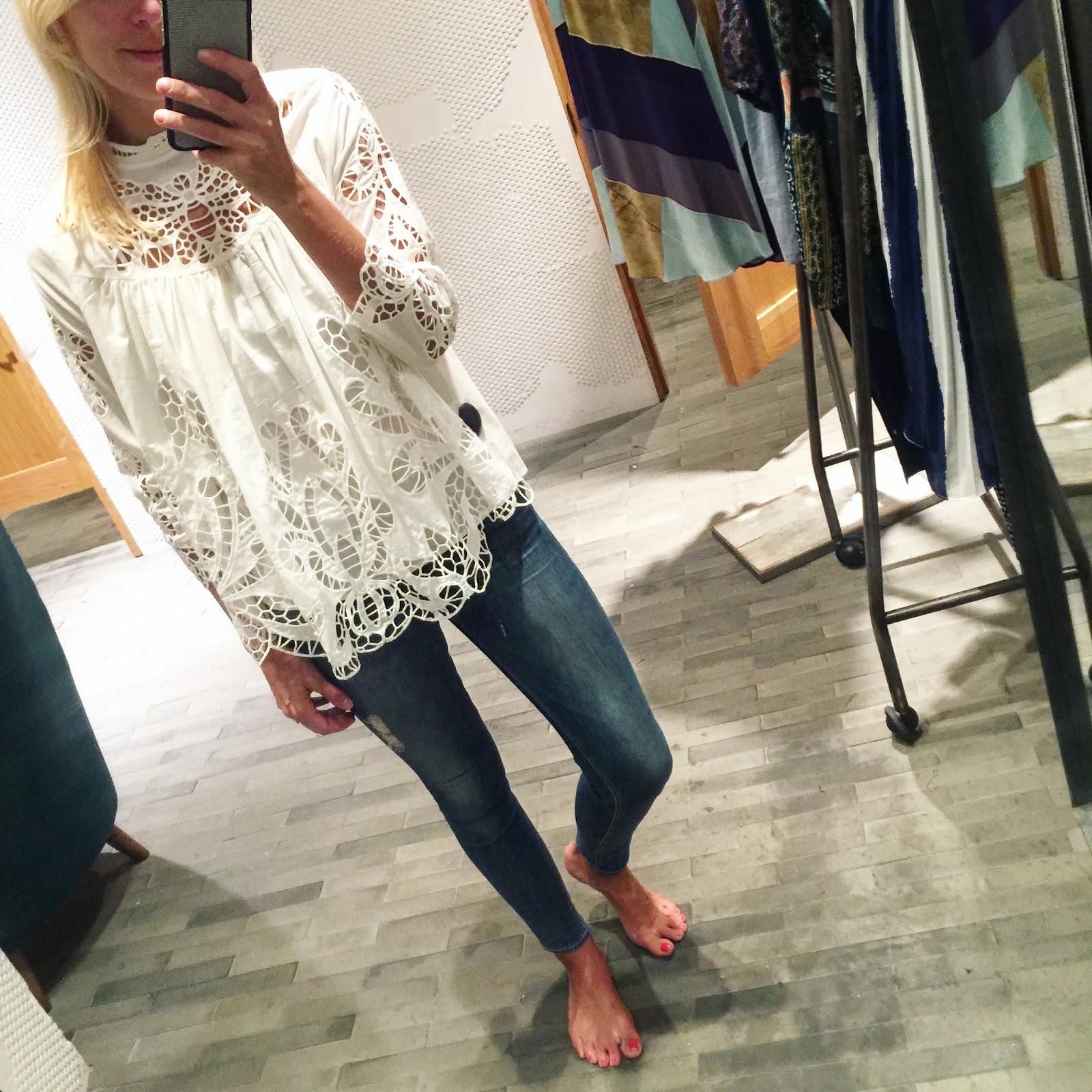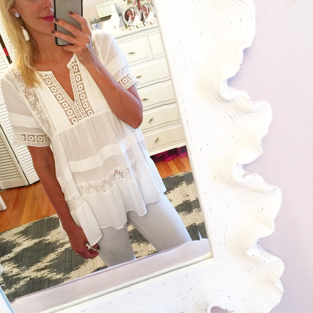 This white blouse is another top pick! I am wearing a size XS, and it comes fully lined with a white tank.