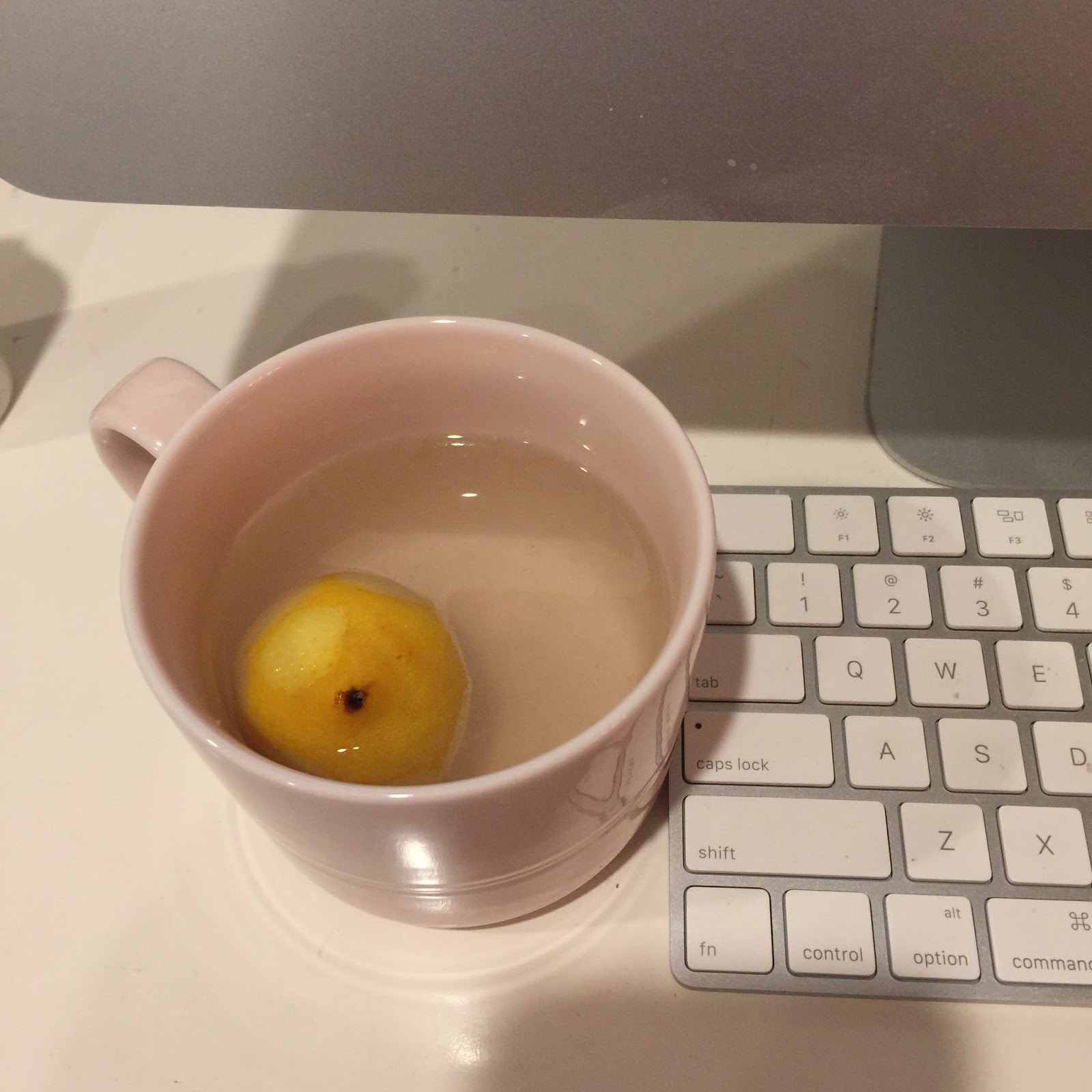 Lemon Water. I start each day with hot lemon water and often end with it as well.