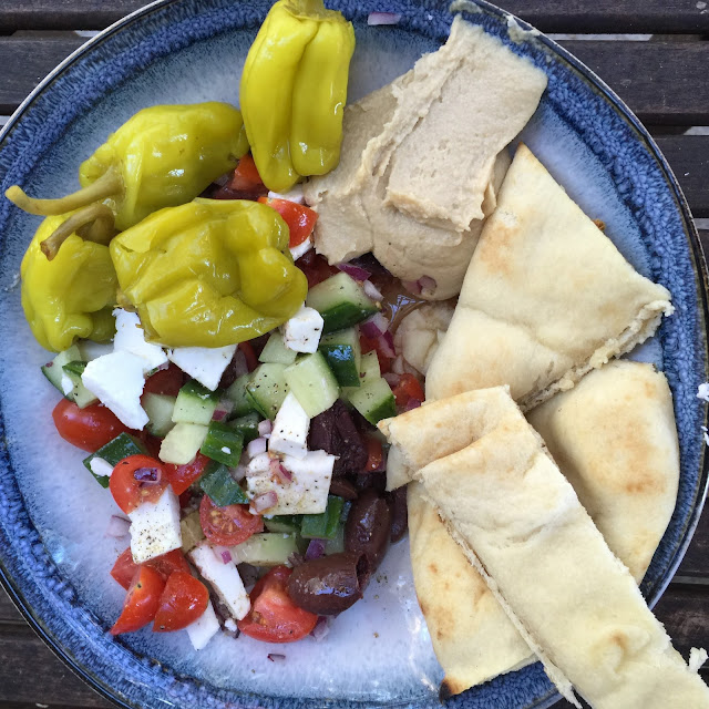 Greek Salad + Hummus + Naan Bread + Pepperoncini