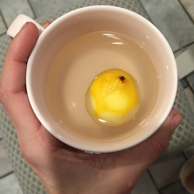 I squeeze half a lemon into a coffee mug with water and microwave 1 minute. You can do this on the stove as well.