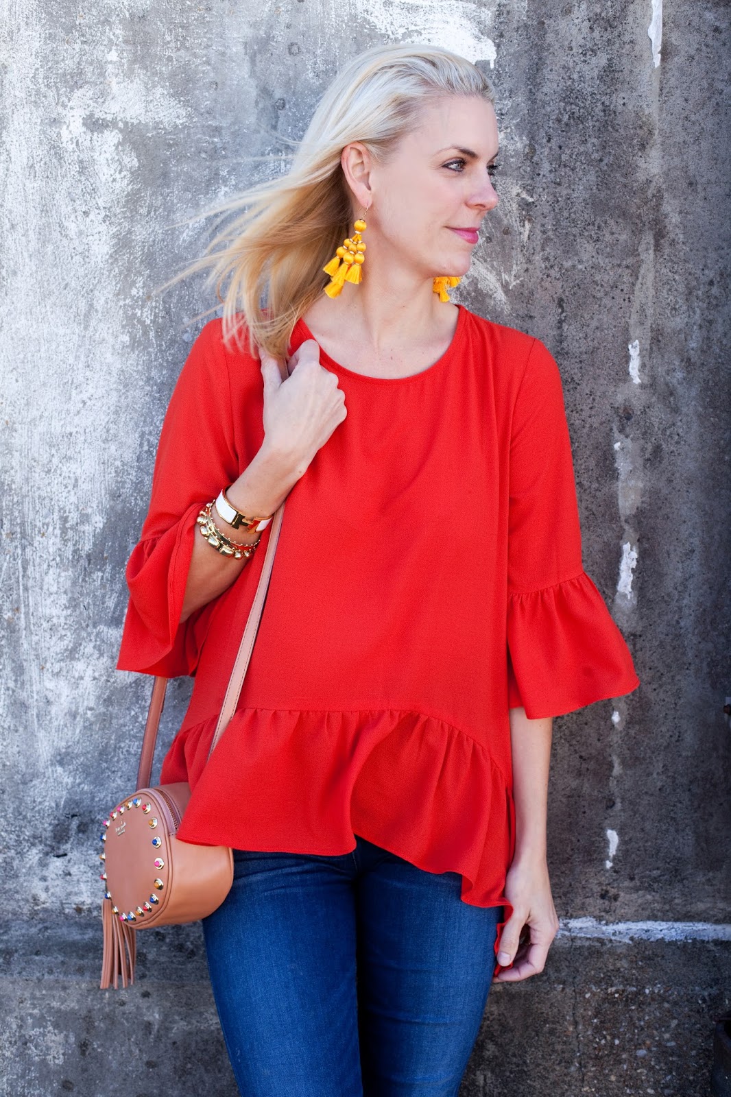 Blouse | Earrings | Jeans | Shoes | Purse also HERE