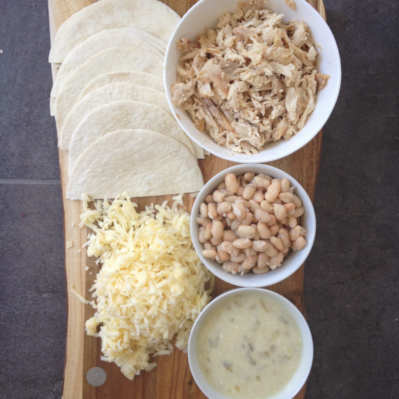 chicken, beans and cheese. Then add a final layer of just tortillas,