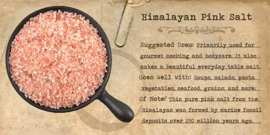 I use the pink salt in my water, I was told by a holistic place that if you sprinkle or put some in your water, it hydrates you better and some other things I can't remember, I just know it is supposed to be good for you – ha!