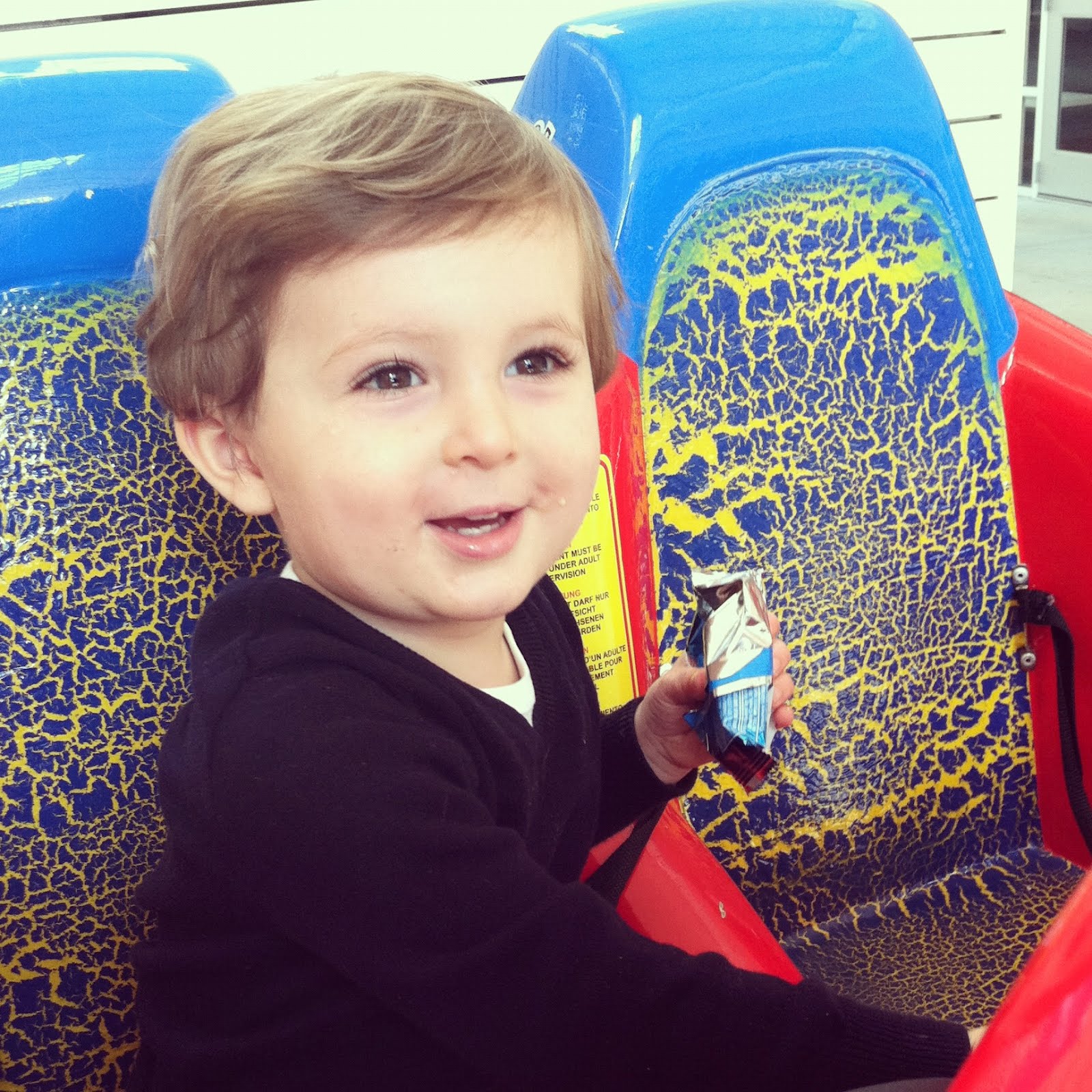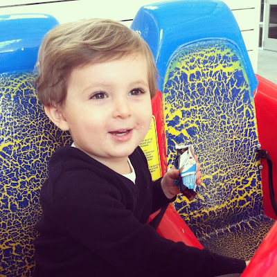 I took my little man to the Outlets yesterday for a morning outing. He loved riding the race cars,